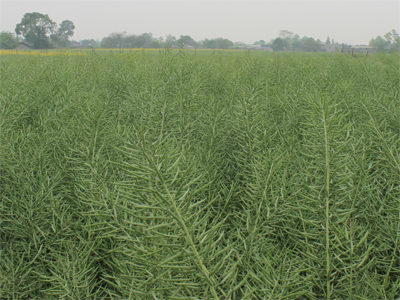 荃油8203是由荃銀高科種業(yè)股份有限公司最新選育的雜交油菜新品種。2010年通過安徽省農(nóng)作物品種審定委員會審定(審定號2010001)。該品種屬半冬性雙低油菜,屬中早熟品種。株高178公分左右,一次分枝10.2個,單株有效角果470個以上,千粒重3.9克,芥酸含量0.53%、硫甘含量29.65umol/g、含油量41.7%。;該品種苗期生長勢較強,耐水耐肥,春季返青快,生長穩(wěn)健,莖稈粗壯,抗倒伏,抗寒性與抗菌核病均較強,后期落花整齊,熟相好,高產(chǎn)穩(wěn)產(chǎn)。