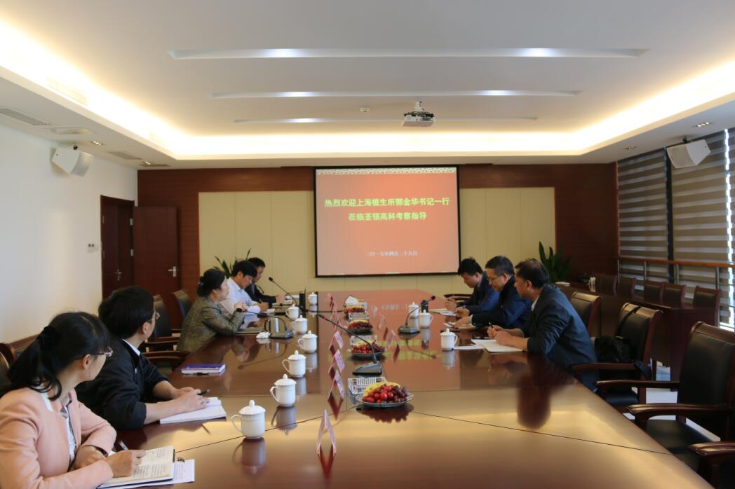 2017年4月28日上午,中國科學(xué)院上海植物生理生態(tài)研究所郭金華書記一行蒞臨荃銀高科,就深化雙方科企合作事宜進行座談交流,荃銀高科副總經(jīng)理張從合、科研部經(jīng)理嚴(yán)志、項目辦主任方玉等參加座談會。會議由荃銀高科董事長兼總經(jīng)理張琴女士主持。