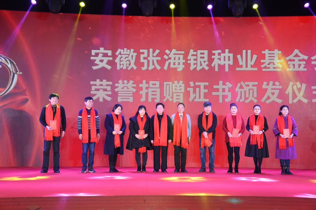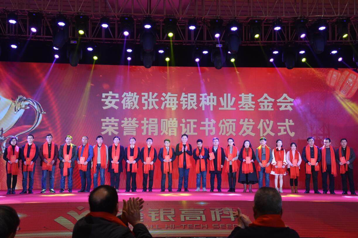 會上,對荃銀高科總部及子公司2017年度先進(jìn)集體、先進(jìn)個人進(jìn)行了表彰獎勵;進(jìn)行了安徽張海銀種業(yè)基金會頒發(fā)捐贈證書儀式。