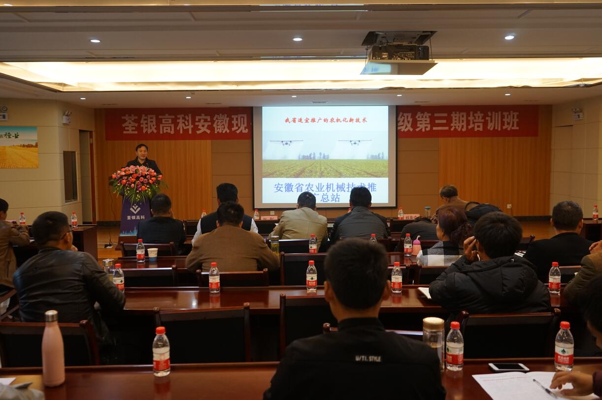 ??? 2018年12月3日,荃銀高科安徽現(xiàn)代農(nóng)場(chǎng)主2017級(jí)培訓(xùn)班第三期培訓(xùn)開班儀式在公司六樓多功能廳舉行。安徽荃銀高科董事長(zhǎng)張琴、營銷總監(jiān)王玉林,培訓(xùn)班總教務(wù)長(zhǎng)楊惠成老師,安徽張海銀種業(yè)基金會(huì)秘書長(zhǎng)張彤,及來自全省各地100多位從事農(nóng)業(yè)種植的青年農(nóng)場(chǎng)主學(xué)員參加了本次培訓(xùn)。