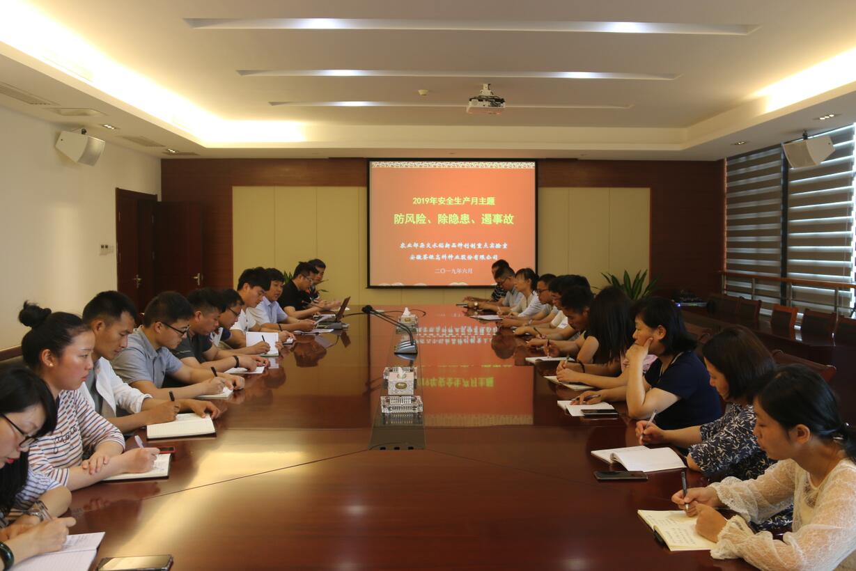 ??? 2019年6月26日上午,荃銀高科副總經(jīng)理張從合帶領(lǐng)公司科研部、分子實(shí)驗(yàn)室、質(zhì)檢部、項(xiàng)目辦和荃銀瓜菜等相關(guān)部門人員開展了以“防風(fēng)險(xiǎn)、除隱患、遏事故”為主題的“安全生產(chǎn)月”活動(dòng)。