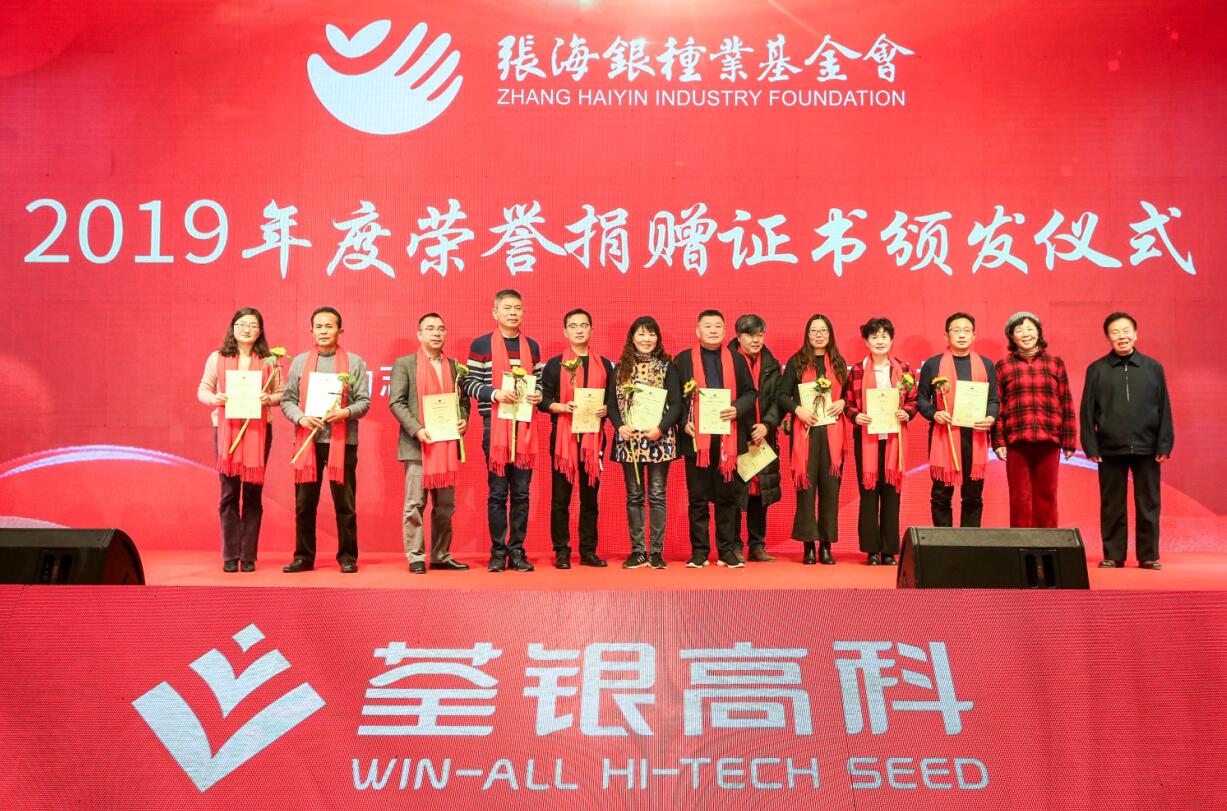 ? ? 公益無界,大愛無疆。會議還進(jìn)行了安徽張海銀種業(yè)基金會頒發(fā)捐贈證書儀式,鼓勵更多人踐行公益,傳遞社會大愛力量。會議現(xiàn)場,荃銀高科員工及有關(guān)愛心人士向安徽張海銀種業(yè)基金會捐贈共計40.78萬元,用于激勵為中國種業(yè)發(fā)展作出突出貢獻(xiàn)的集體和個人,以及助學(xué)公益項目和慈善事業(yè),助力公益,薪火相傳。