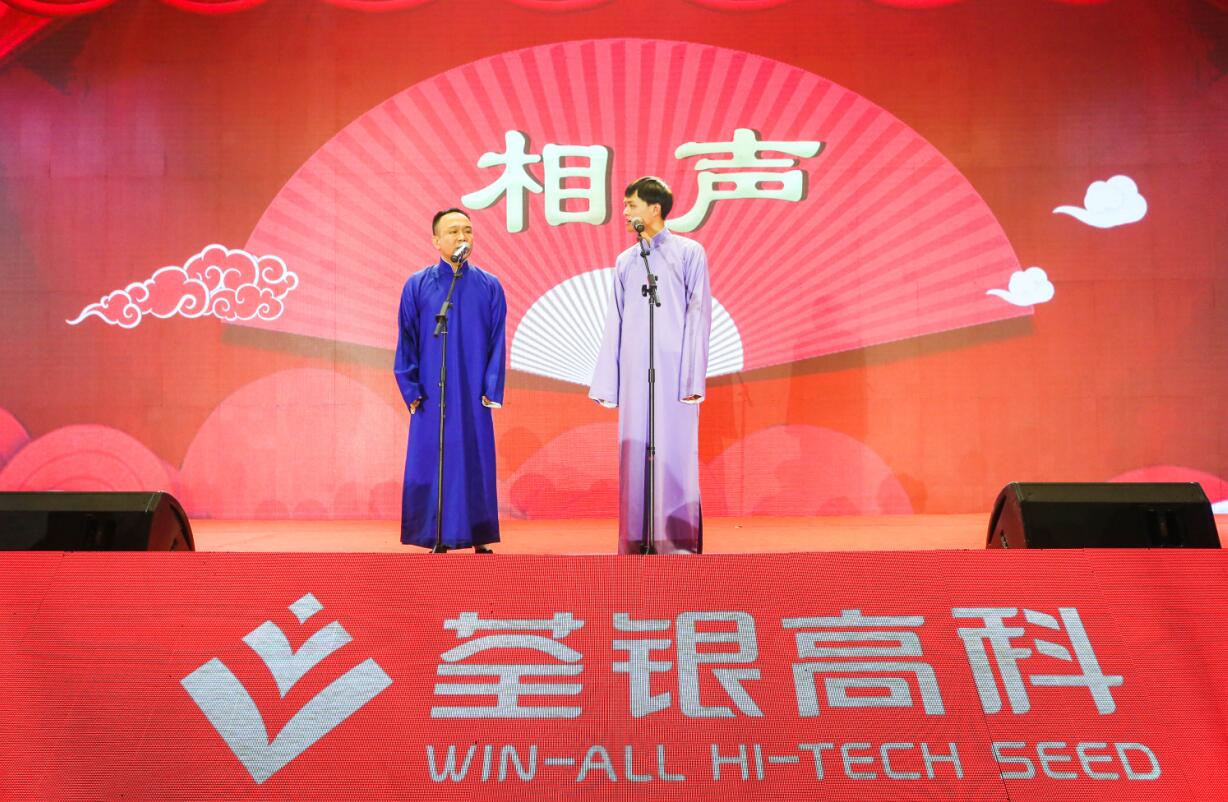 ? ? 聯(lián)歡會以喜慶祥和的歌舞表演《在希望的田野上》拉開序幕,科技公司的《街武》,將武術(shù)和街舞結(jié)合,剛?cè)岵?jì),十分炫酷;玉米公司的相聲《套牌》,道盡了一線種子銷售人員的不易;小品《西游記之女兒國2》詼諧幽默,令人捧腹大笑;詩朗誦《我愛祖國,我愛荃銀》殷情并茂,音詩畫《我和我的祖國》大氣恢弘,京歌《我是中國人》激情澎湃,荃銀人用自己的方式歌頌祖國,祝福荃銀。期間,中化農(nóng)業(yè)黨群工作部姚雁主任傾情獻(xiàn)唱《我把太陽迎進(jìn)祖國》以及黃梅戲選段,獲得掌聲陣陣。整場晚會形式多樣,精彩紛呈,大家載歌載舞,盡顯風(fēng)采魅力,現(xiàn)場還有互動抽獎,獎品豐厚,引得喝彩不斷。今年是荃銀高科上市十周年,加入中化農(nóng)業(yè)一周年,公司經(jīng)營班子成員及子(分)公司領(lǐng)導(dǎo)在張琴總經(jīng)理帶領(lǐng)下齊聲高唱《今天是你的生日》,為祖國、為荃銀送上由衷的祝福。晚會在高亢的歌聲中圓滿落下帷幕。