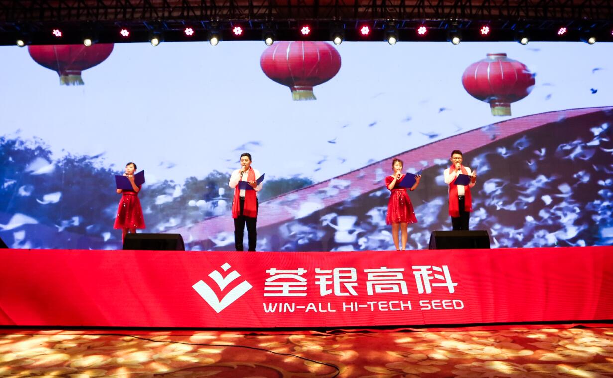 律回春暉漸,萬象始更新。1月16日下午,荃銀高科2020年新春聯(lián)歡會在合肥舉辦,中國種業(yè)十大功勛人物、公司創(chuàng)始人張海銀先生,中化農(nóng)業(yè)副總裁、中種集團(tuán)公司總經(jīng)理、荃銀高科董事宋維波,中化農(nóng)業(yè)財務(wù)管理部總經(jīng)理高健、黨群工作部主任姚雁、戰(zhàn)略創(chuàng)新部總經(jīng)理樓向輝等中化農(nóng)業(yè)相關(guān)部門的領(lǐng)導(dǎo),公司產(chǎn)業(yè)合作伙伴、金融合作伙伴,社會愛心人士及志愿者,荃銀高科經(jīng)營班子及各子(分)公司的領(lǐng)導(dǎo)、員工約600多人歡聚一堂,辭舊迎新,共迎新年。